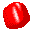 Description: A triangular bright red candy shaped button is slowly rotating.