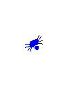 Description: A small blue spider with blinking red eyes is sitting in the middle of its web.