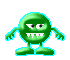 Description: A round green creature with roving eyes and big teeth is jumping up and waving its arms.Dimensions: Rating: 3.00 Added to collection: 24 years, 4 months ago Toolbox