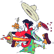 Description: A cowboy decides to eat a very hot dish and gets burnt for it.
