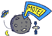 Description: A big motel sign marks the spot on a small planetoid for the customers to come.